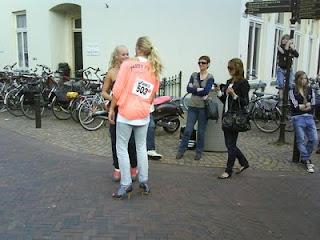 Sie hatte sogar ihre Laufkollegen um Highheels gebeten, aber wer läuft denn schon als gestandener Mann in solchen Wackelschuhen herum. Die Preise waren schon verlockend genau so wie die hübschen Sportlerinnen, 1.Platz 1000 Euro, 2.Platz 600 Euro, 3 Platz 400 Euro….schade
