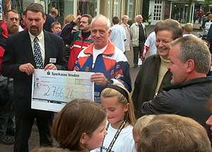 ...2.766,26 DM wurden von den Teilnehmern der Meile 2000 für Toleranz für die Opfer von Enschede gespendet..... |