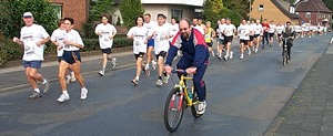 ...auf den ersten Metern in Vreden... Heinrich Noldes mit Rad... |