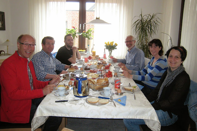 Andrea, Maria und Willi bereiten sich schon seit Monaten auf den Marathon am 27.04.2014 in Düsseldorf vor. Im Trainingsplan stehen natürlich auch die langen Kanten über 3 Stunden. Die Drei bekamen von Norbert, Simon und Hermann Unterstützung und haben sich am letzten Samstag zu einem „Frühstückslauf“ verabredet. Ab Sportplatz ging es um 7:30 Uhr auf die ca. 30 km lange „Hollandrunde“, für Norbert und Simon eine neue Erfahrung, denn sie sind so eine lange Distanz noch nicht gelaufen. Nach dem Lauf wurde gemeinsam gefrühstückt, diese Belohnung war dann auch redlich verdient.