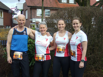 Jonas Bäumer mit Schwägerin Martina Herick und Töchter Christine und Marie-Luise. Die Startnummern täuschen, der Veranstalter in Alstätte ist der ASV Ellewick