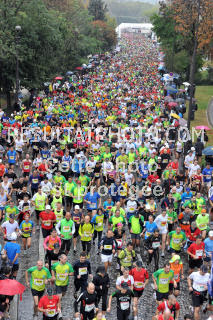 Aufgrund von vorherigen Leistungen könnte ich im Startblock „préferentiel“ (bevorzugt) eingeteilt werden. Leider gab trotzdem es sehr viel Gedrängel während des ersten Kilometers. Ich brauchte über 5 Minute und dachte: Glücklicherweise ist die Zeite heute nicht wichtig 🙂 Ab Kilometer 1 gab es mehr Raum und ich konnte richtig locker loslaufen. Der Start hat ingesamt fast 20 min gedauert. Sofort nach dem letzten Läufer fing die Entsorgung der überflüssigen Laufkleidung an. Einige Clochards (Obdachlosen) versuchten noch neue Bekleidung zu greifen, ohne Erfolg.