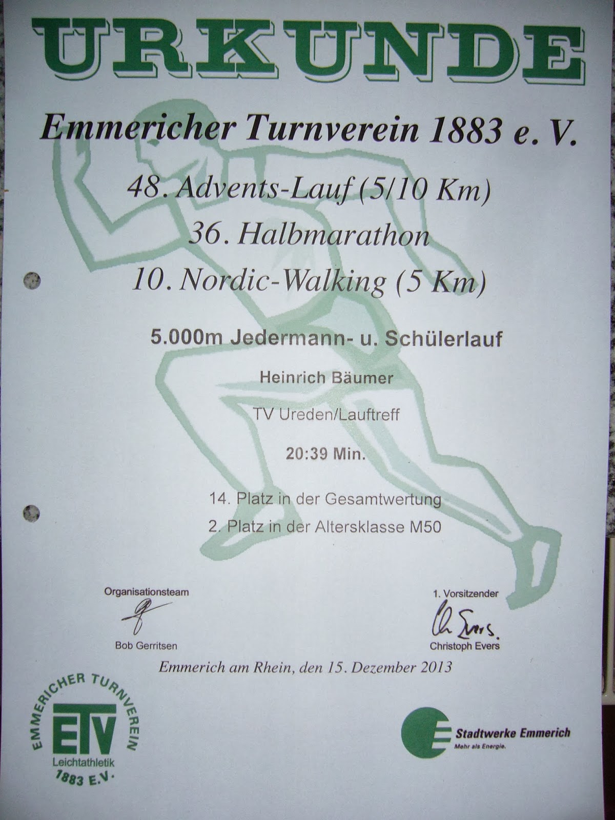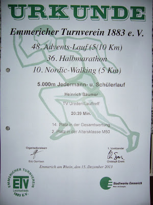 Es war wieder einmal eine spontane und sehr gute Entscheidung. Am Sonntagmorgen wenn alle noch in den Betten liegen sich auf den Weg machen und den frühen Start (10:00Uhr) nutzen um die 5km als Test für den Silvesterlauf in Stadtlohn zu laufen. Das Ergebnis ist sehr zufrieden stellend, das Intervalltraining lässt grüßen.