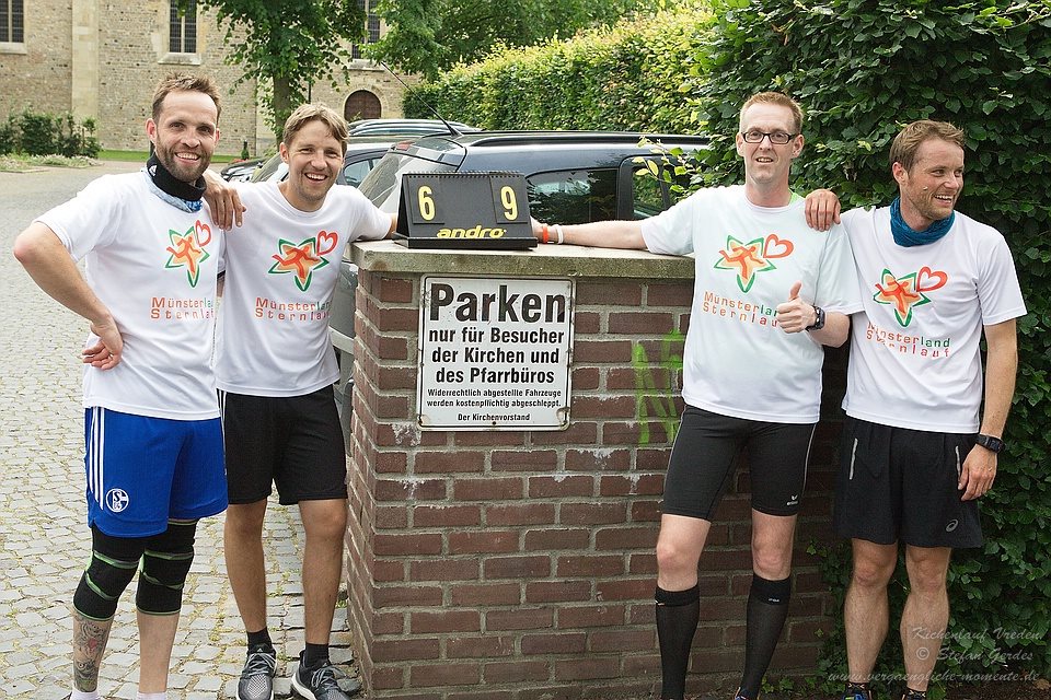Der Grund, 4 Vredener wollen am Tag des Sternlaufes die komplette Distanz (69 km) von Vreden nach Münster laufen, wo aus allen Himmelsrichtungen an dem Tag die Läufer zusammen kommen. So zog diese Veranstaltung an der Kirche viele Läufer/innen aus Vreden, Ellewick und sogar aus Ammeloe und Stadtlohn an,
