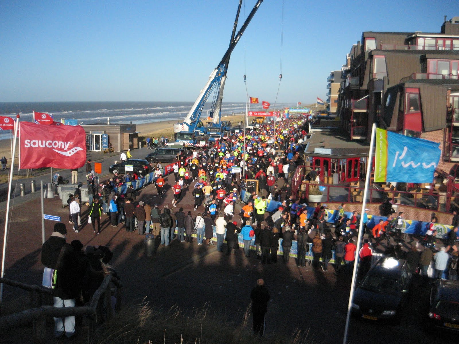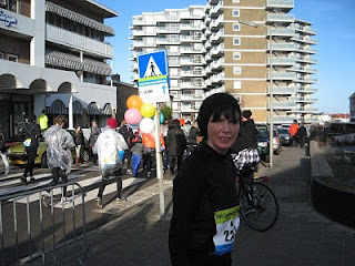 Maria konnte sich erstmal unter 12000 Teilnehmer im Block A direkt hinter den Profis eingliedern.Nach dem Start um 12:30 Uhr verliefen die ersten 2 km noch durch die City von Egmond aan Zee.Dann mußten die 10km zum Wendepunkt Castricum hart im Gegenwind am Strand erarbeitet werden.wonach es in den Dünen wieder zurück zum Ziel nach Egmond ging.